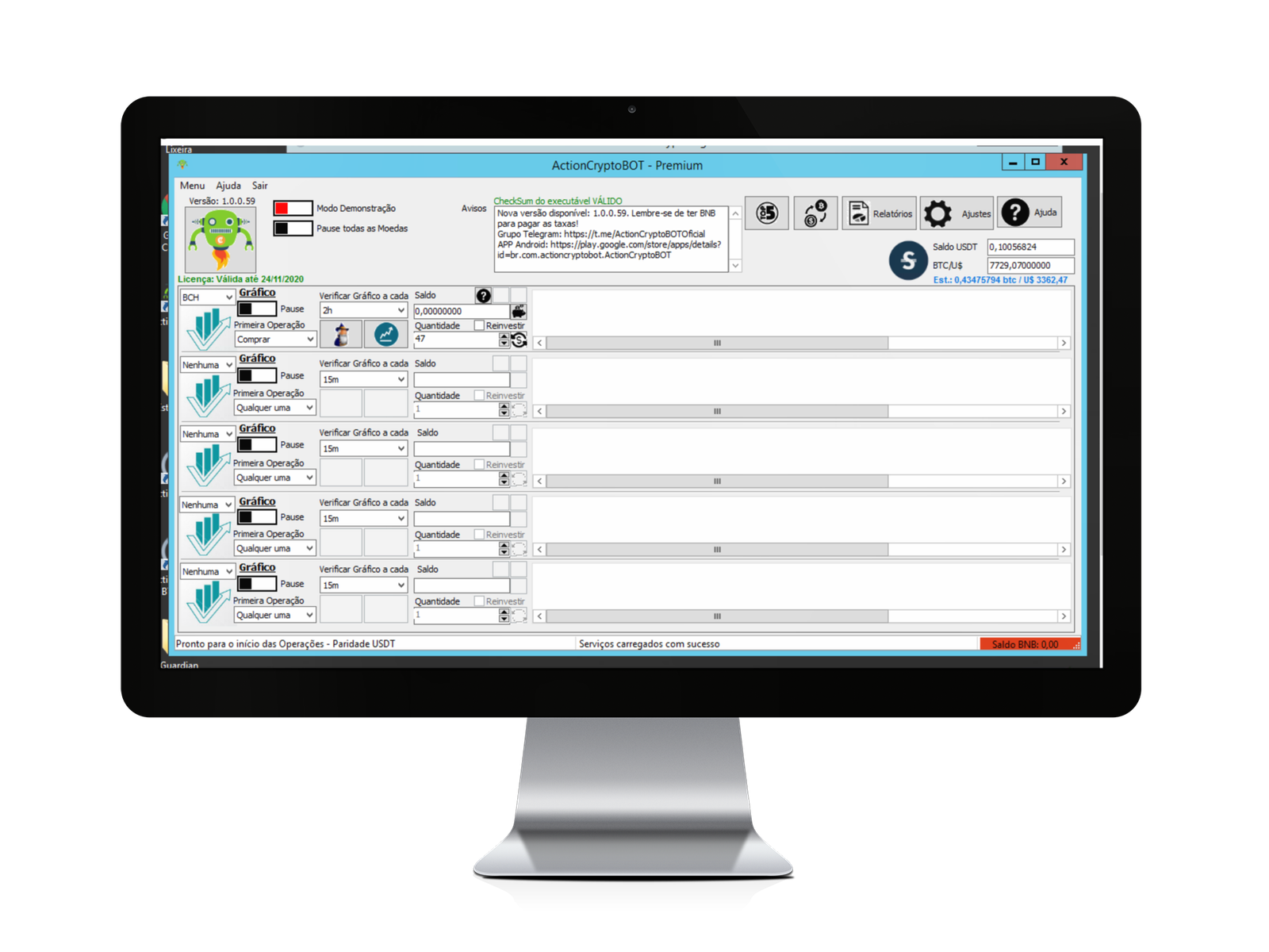 Você pode testar diferentes combinações de análises e ver qual se adequa melhor a cada moeda, fazendo testes sem efetuar na exchange e evitando gastos desnecessários. Achou uma combinação que lhe agrade? Apenas desative o modo demonstração e comece a ganhar seus lucros. Também possui um Simulador de BackTest.